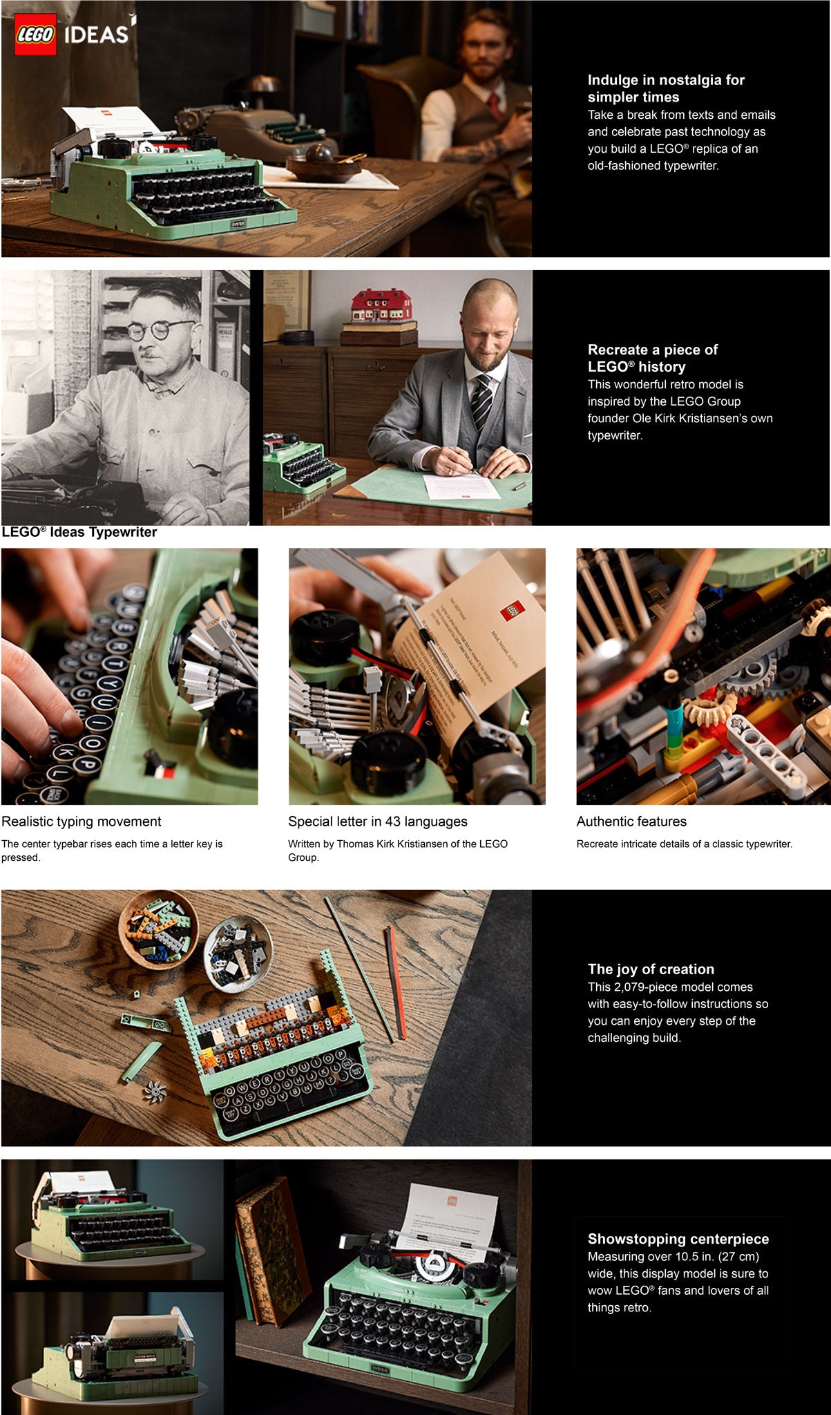 •The design is inspired by the classic typewriter used by the LEGO Group’s founder Ole Kirk Kristiansen.